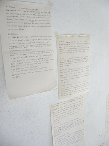detalle instalación :::: papeles mecanografiados sobre pared + sonido